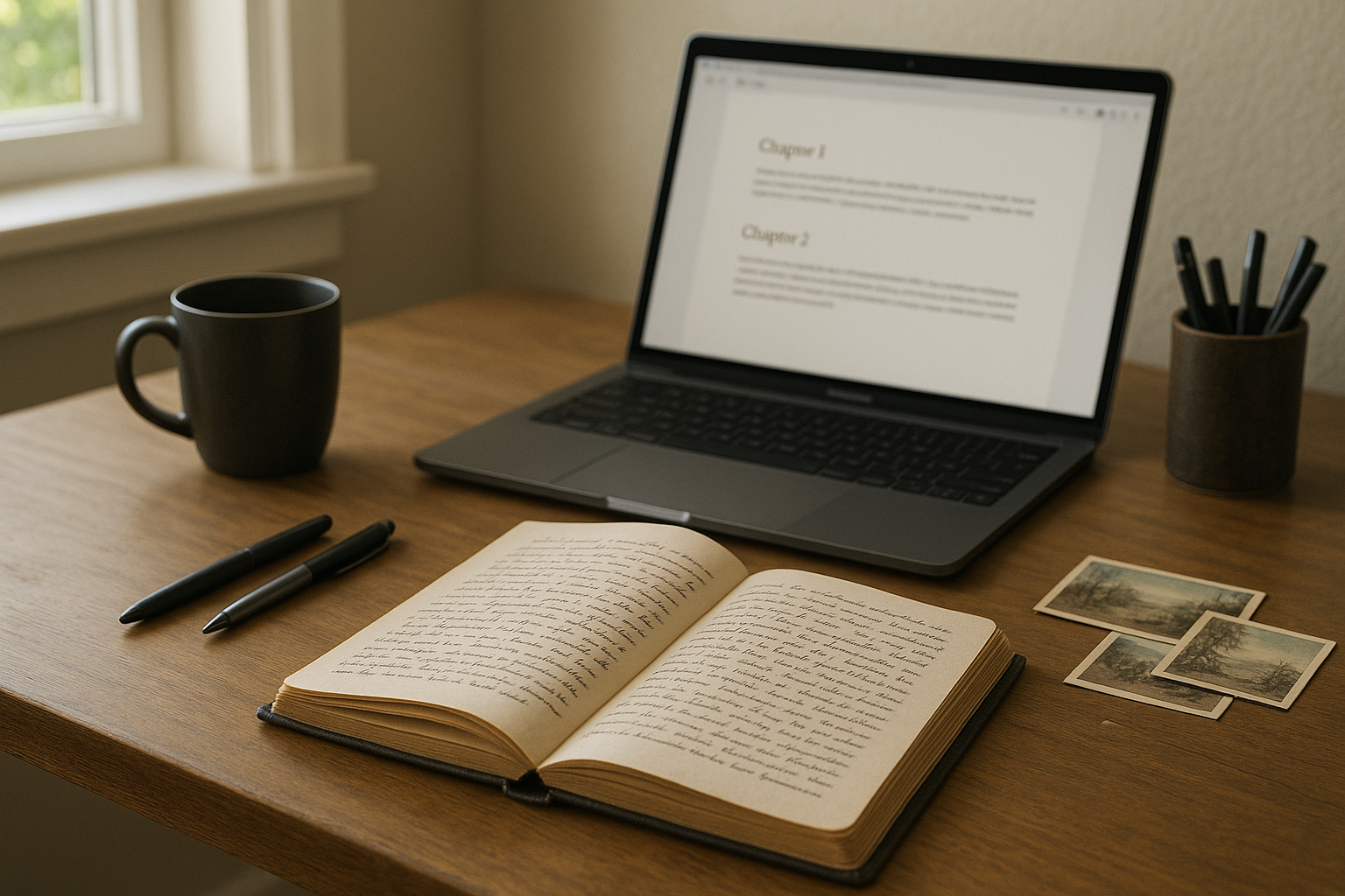 Entrer dans l'atelierUn espace de création où s’entrelacent notes manuscrites, chapitres en cours et inspirations du quotidien. Le bureau où les idées prennent vie et deviennent histoire.