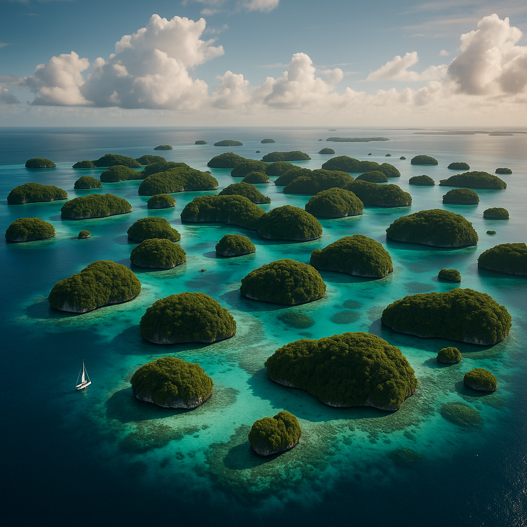 Un monde d’îlots dispersés, guidés depuis toujours par les étoiles et les maîtres navigateurs. La Micronésie est une mer de légendes, un archipel d’eaux tranquilles où bateaux, esprits et récits se croisent à l’infini. Ses lagons abritent des mémoires oubliées, ses traditions murmurent la science du vent, et chaque horizon y devient une promesse.